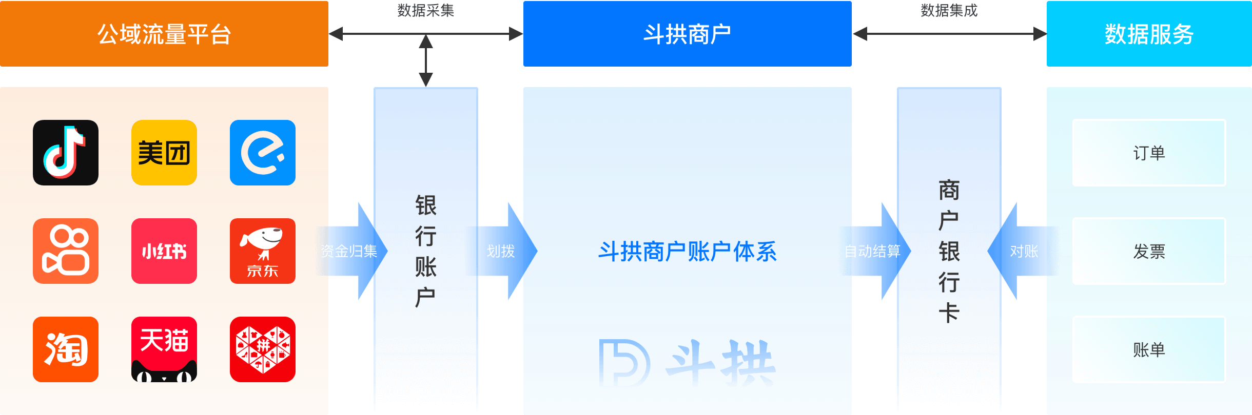 客户在主流餐饮公域、电商公域及码商、银行、异业等营销机构均有合作业务,总计26个渠道数据来源,对账工作复杂且效率低。